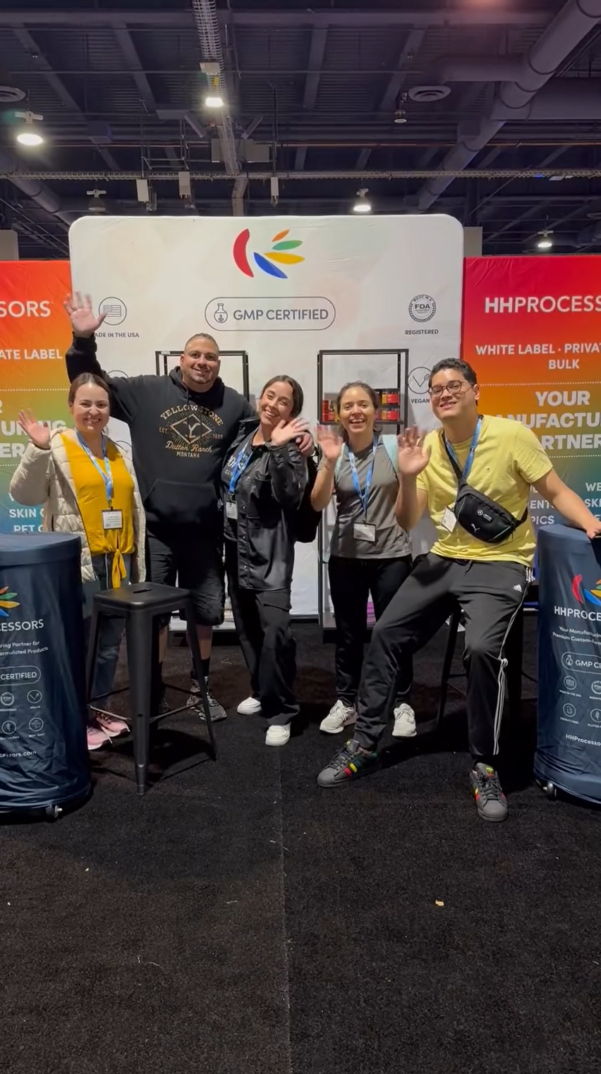 The team showcased a range of functional gummies, wellness tinctures, and skincare products, each reflecting the brand’s dedication to sustainability and product excellence. Visitors explored our turnkey manufacturing services, discovering how HH Processors helps brands launch custom products quickly and confidently.