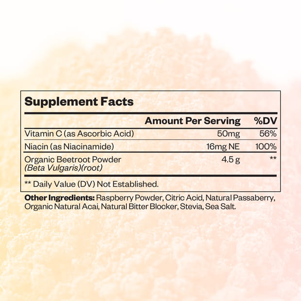 This formulation combines Organic Beetroot Powder with complementary components such as Vitamin C and Niacinamide, along with flavor supporting elements including Raspberry Powder, Acai, natural flavor systems, and mineral balancing ingredients. The inclusion of a natural bitter blocker improves palatability, allowing brands to develop drinkable supplements with a smooth and consumer friendly taste profile.