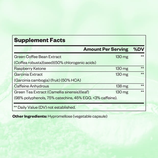 This formulation includes a combination of plant extracts and functional compounds such as Green Tea, Coffee-derived ingredients, and other widely used components in active lifestyle products. It is typically positioned to support energy, focus, and daily wellness balance within a single formula.