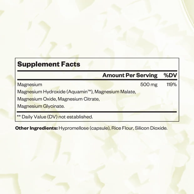 This type of formulation is often associated with products designed to deliver magnesium through multiple bioavailable forms.
