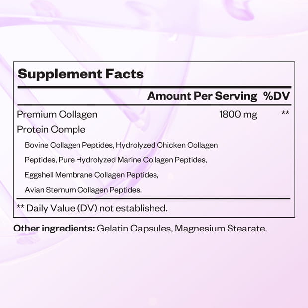 This formulation features a combination of Collagen Peptides derived from Bovine, Marine, Chicken, Eggshell Membrane, and Avian Sources. Delivered in a gelatin capsule system with Magnesium Stearate as a supporting component, the blend enables the development of supplements designed for comprehensive structural and beauty focused applications.